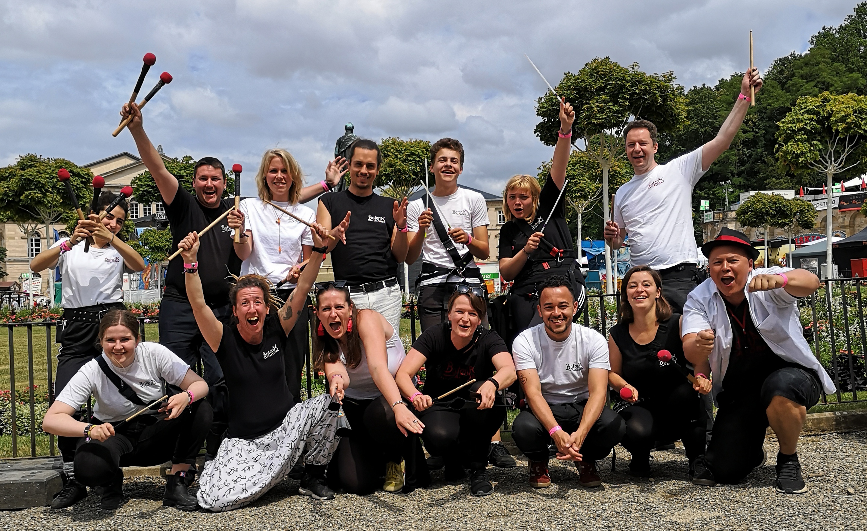 Diese 6 bis 20 Percussionisten machen Music on Samba Drums